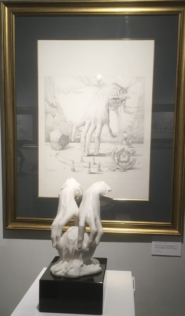 Drawing Pentagramme 5 Nombre nuptial, c.1970 and its resin sculpture Genesis, Wojciech Siudmak